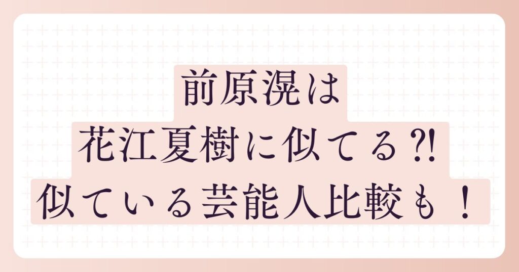 前原滉は花江夏樹に似てる⁈似ている芸能人3人の画像比較も!!
