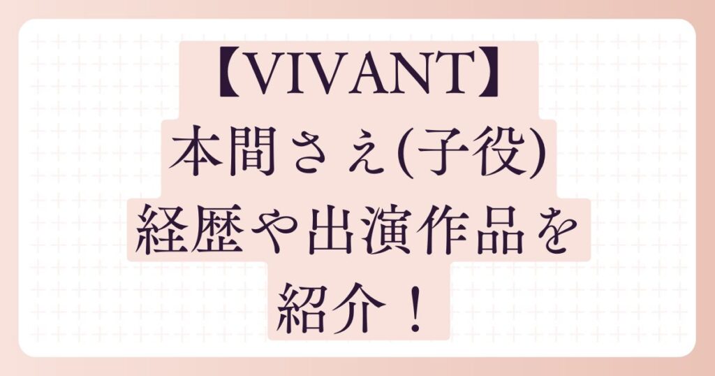 【VIVANT】ジャミーン役の本間さえ(子役)って誰?経歴や出演作品を紹介!
