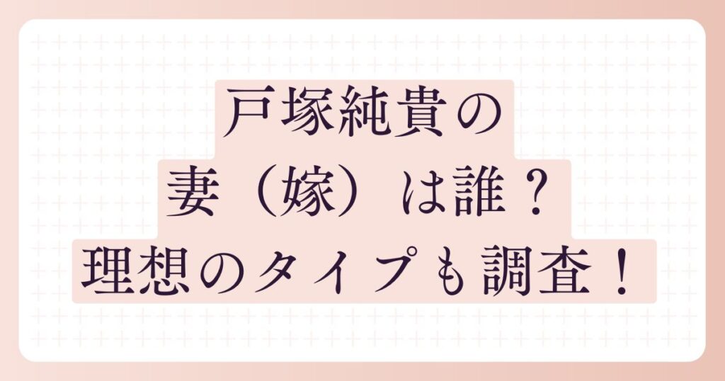 戸塚純貴の妻(嫁)は誰?結婚はしている?好きなタイプも調査!