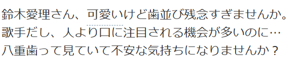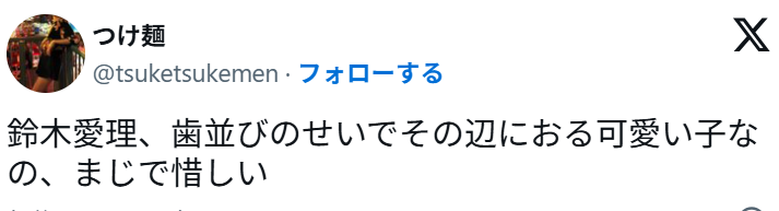 鈴木愛理さんの歯並びに関するSNS投稿がたくさんありました。