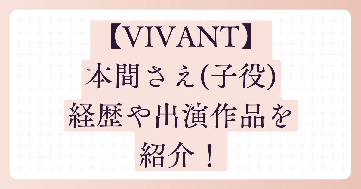 VIVANTジャミーン役本間さえ(子役)さんは、映画、様々なCM・TV・WEB媒体に出演されています。