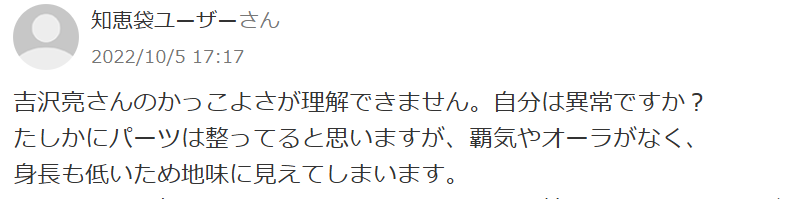 吉沢亮さんは「かっこよくない」のではなく、「かっこよすぎるがゆえに近寄りがたい」のかもしれません。